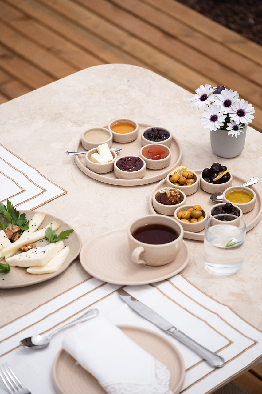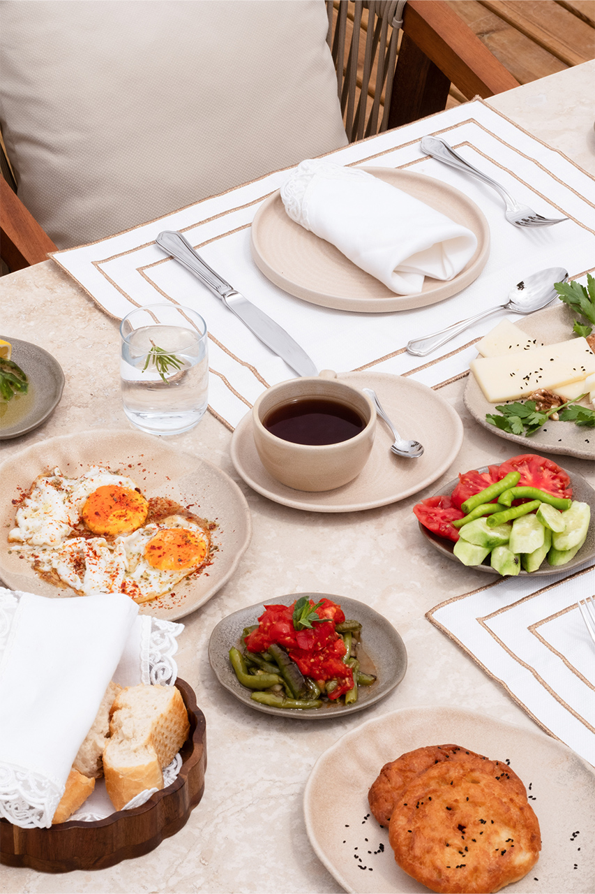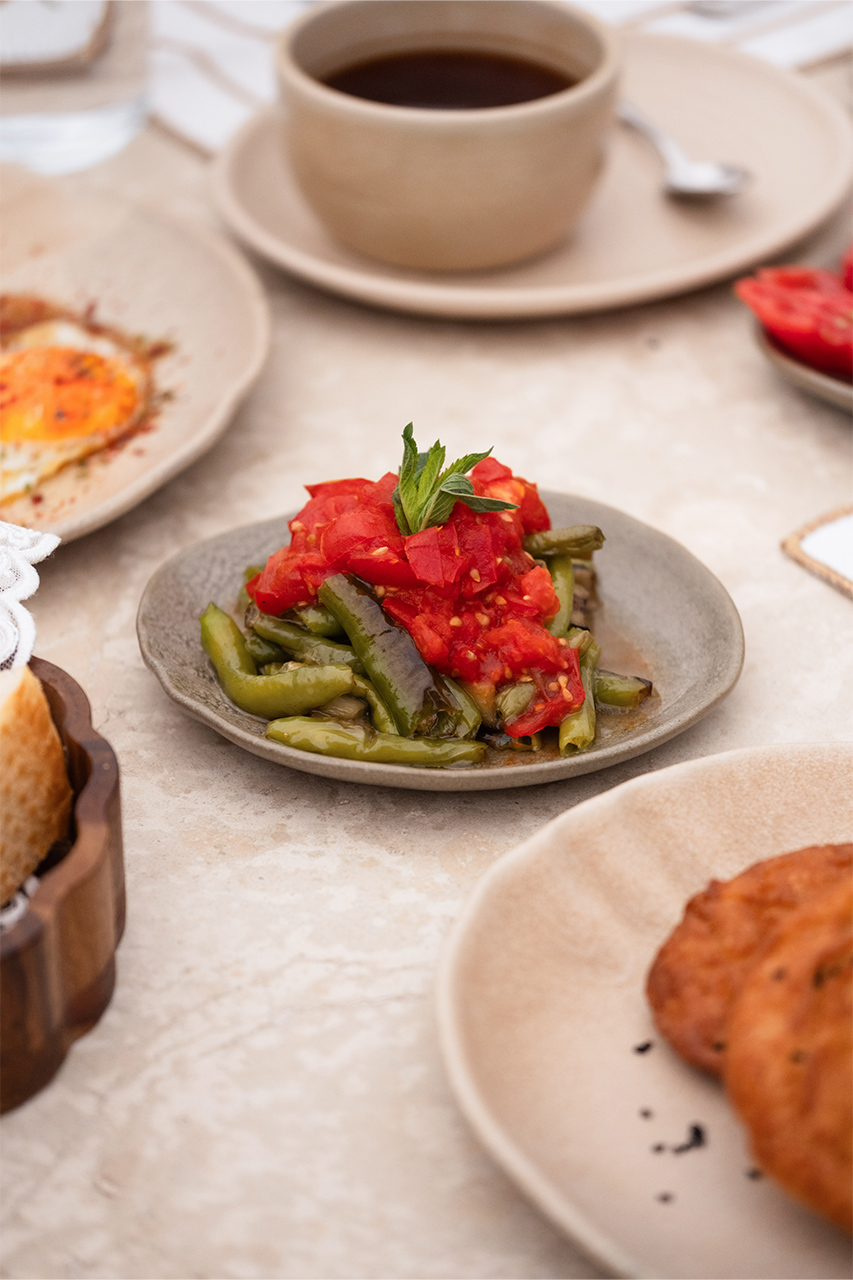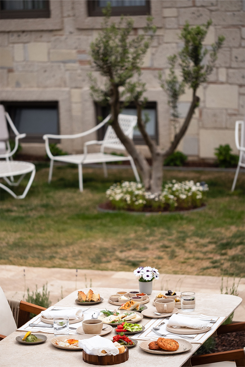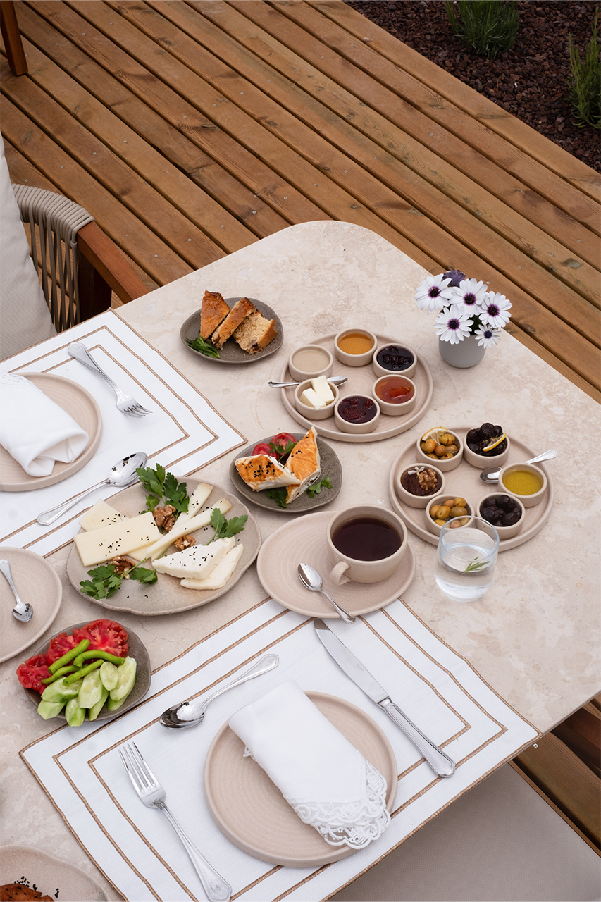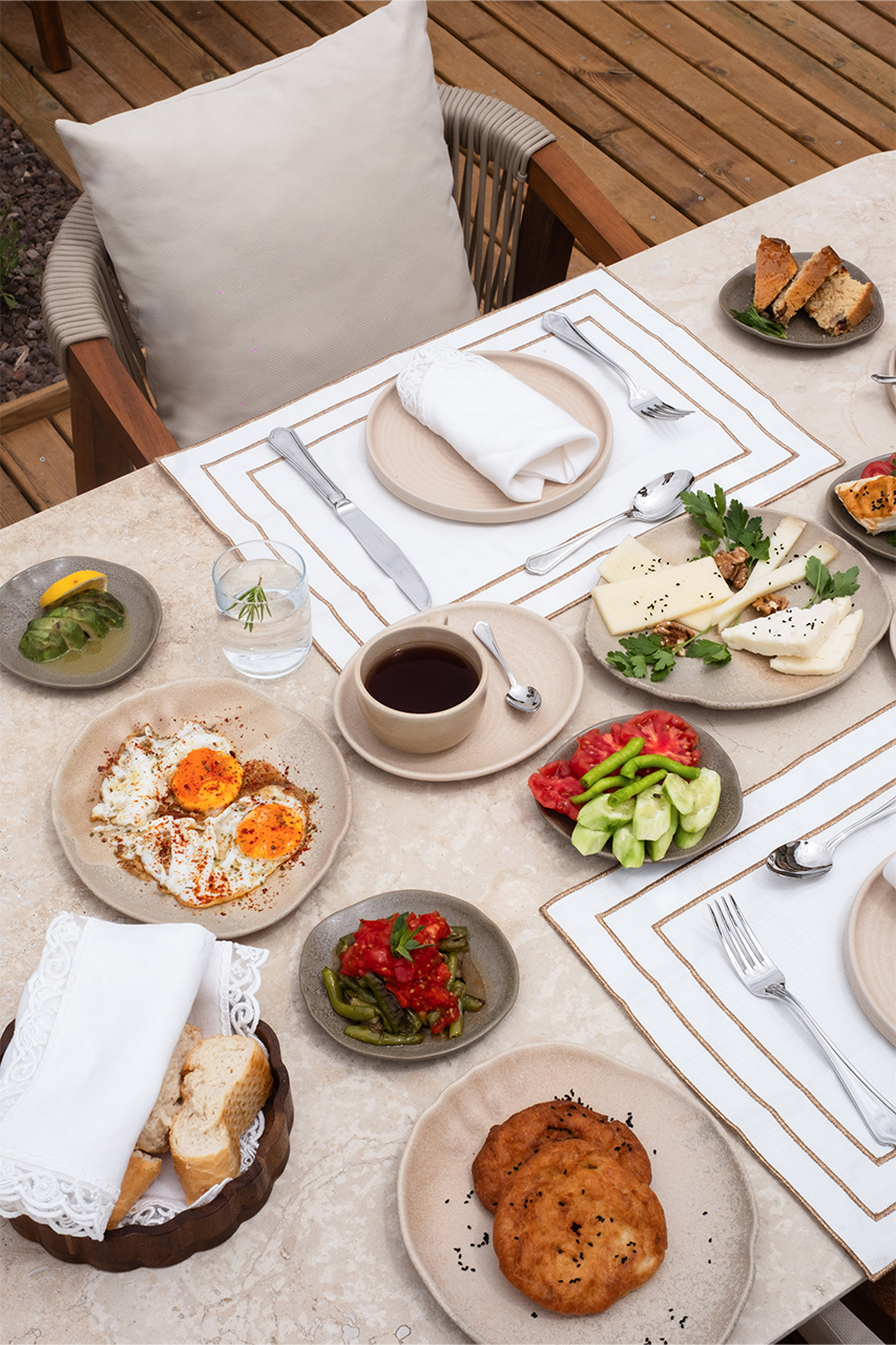 Bahçede kurulan bu sofrada, yerel üreticilerden gelen mevsimlik malzemeler özenle bir araya gelir; her tabakta doğallık ve lezzet kendini hissettirir.